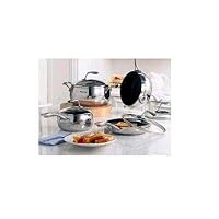 Each piece of the Chef Series cookware features an encapsulated base with a thick layer of aluminum fused between stainless steel, for fast and even heating. Cast stainless-steel handles will stay cool to the touch when used on the stove top. Give this set to the new bride and groom and they will remember you every time they sit down for a meal.
