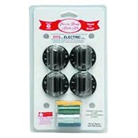 Universal fit. Fits most electric ranges. 4 knobs per pack. No. 8114: Black No. 8124: Chrome No. 8134: White