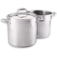 Our pasta set includes a 12-quart covered stockpot and a 12-quart pasta insert. The advantages of cooking with this insert are many.The insert fits into the pot and the pasta cooks within the insert. When the pasta is cooked, simply lift the insert above the pan to drain. Because the pasta is lifted rather than poured, draining is a gentle process, ideal for delicate filled pasta such as ravioli. As the water drains back into the cooking pot, there is no worry of water backing up into your sink if your colander drains too slowly. And if you decide you need to cook a second batch of pasta, the water can be brought back to a boil quickly. Not just for pasta, the insert may be used for blanching vegetables, boiling corn or making stocks, and the stockpot alone will hold a party size batch of chowder.